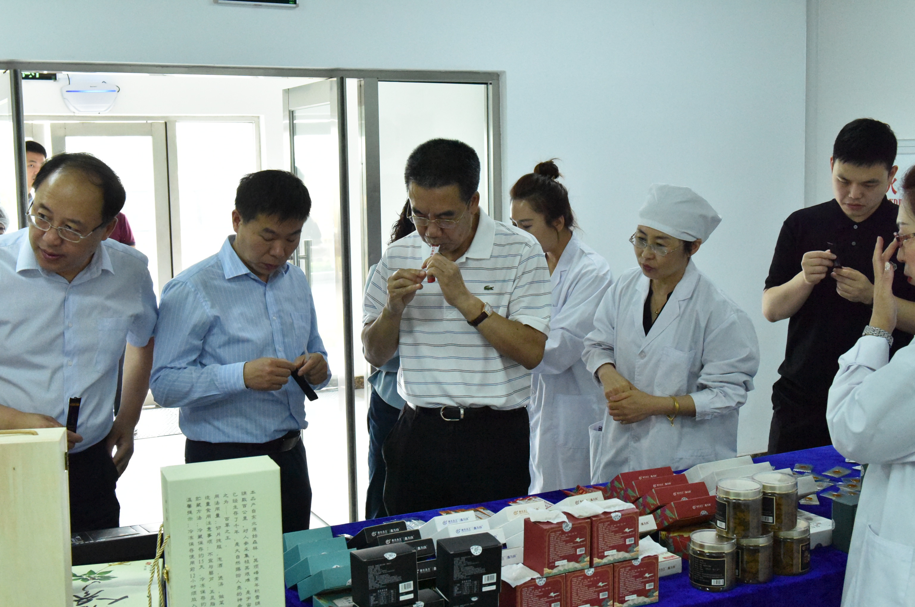 韩英彪总经理带领周惠会长一行参观北湖园区,向周会长一行介绍了北药品正公司研发出品的新资源食品系列。