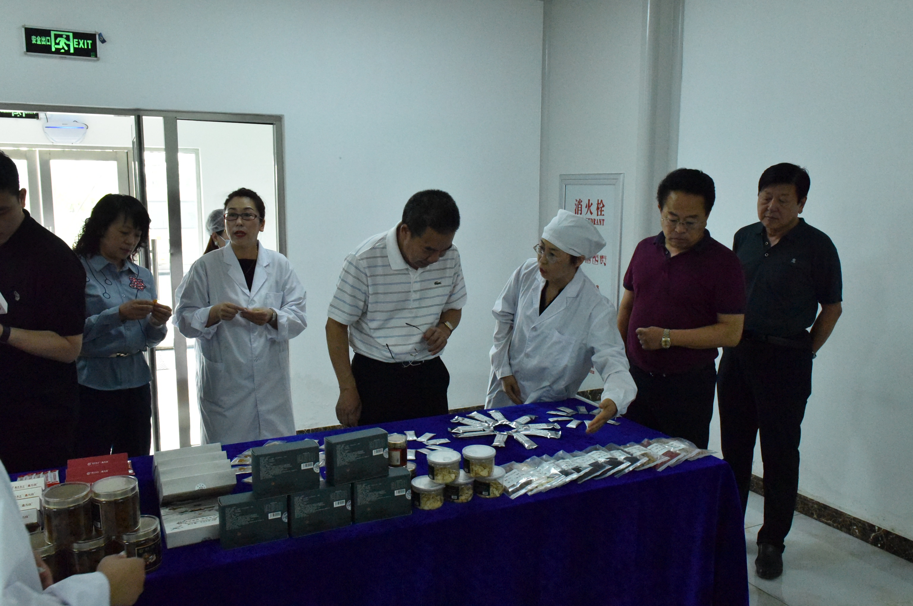 最后,董事长陪同客人来到莲花山厂区,参观了北药药材加工公司的标本室、成品库、以及鼎信检测公司的化验室。